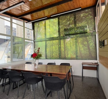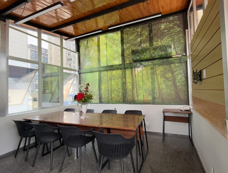 Co-Working com sala de reunião ou sala de aulas comportando de 8 a 10.
